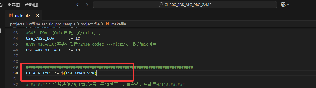 (2)然后在makefile中配置CI_ALG_TYPE := $(USE_WMAN_VPR),如图3所示。