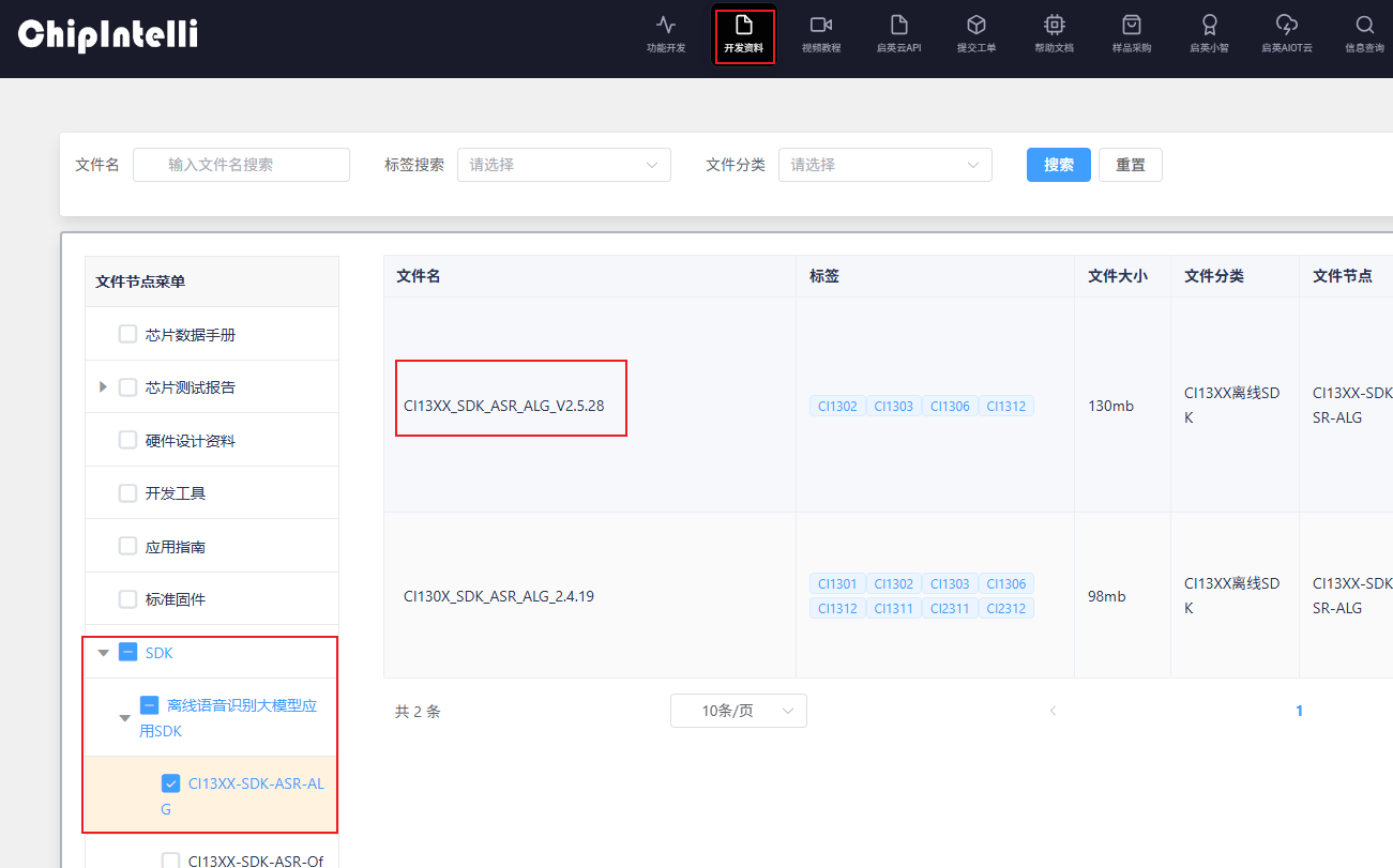 软件SDK下载:CI13XX_SDK_ASR_ALG_V2.5.28(若有新版本,请使用最新版本的SDK)