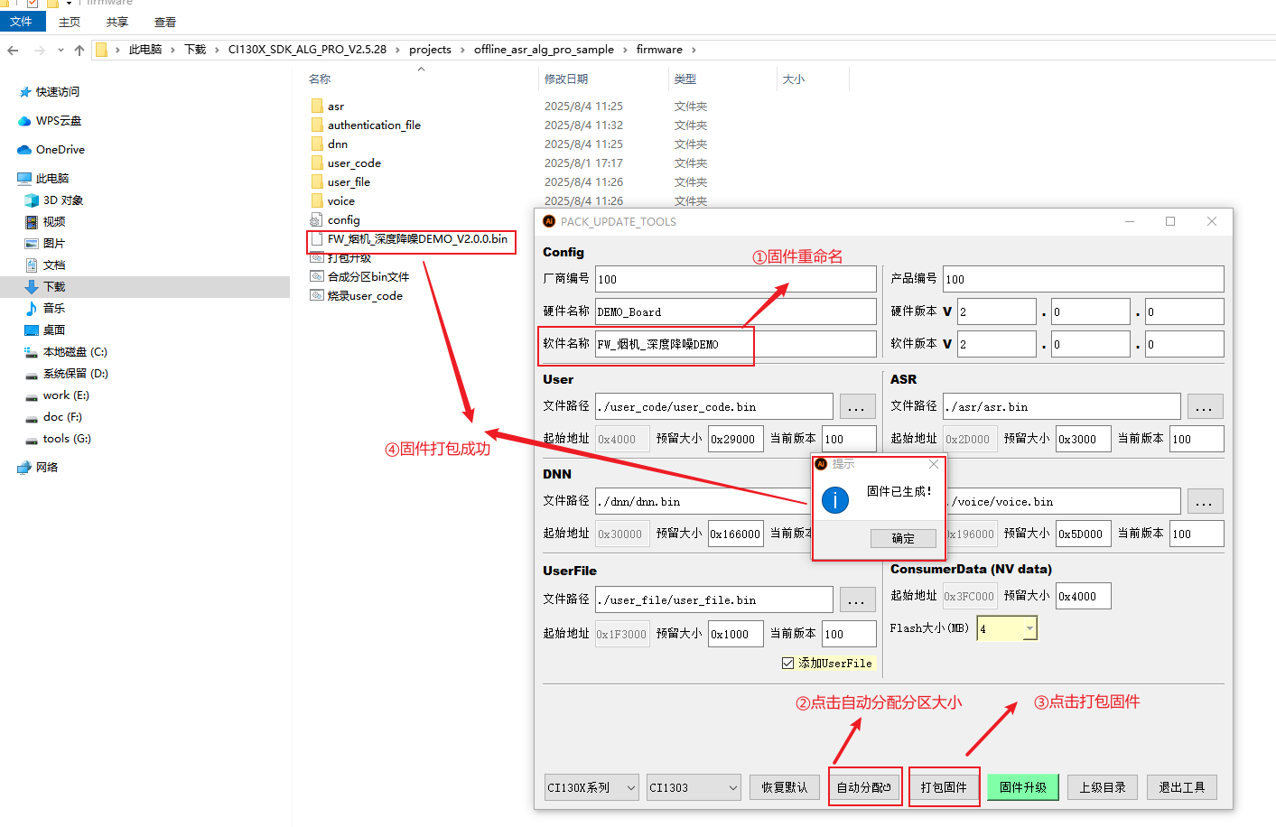 2、打包合成固件;