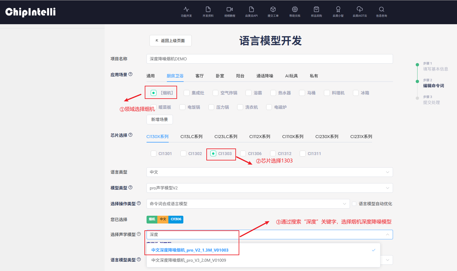2、深度降噪在AI平台制作ASR与DNN模型请选择深度降噪专用模型。