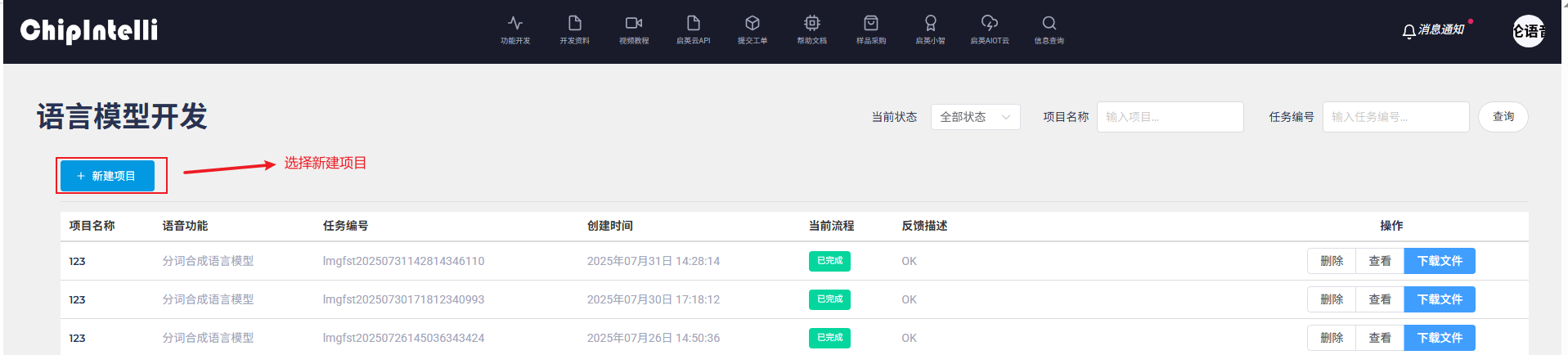 1、进入AI平台组件开发页面,选择语音模型开发;