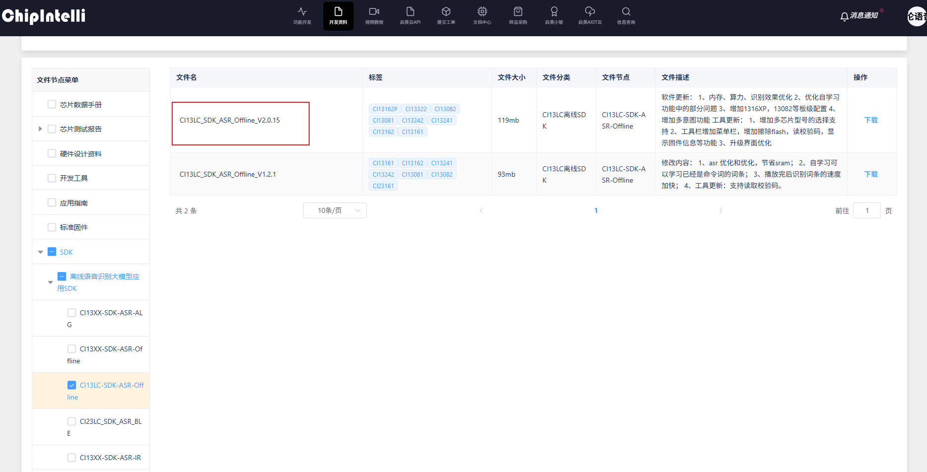 软件SDK下载:CI13LC_SDK_ASR_Offline_V2.0.15(若有新版本,请使用最新版本的SDK)