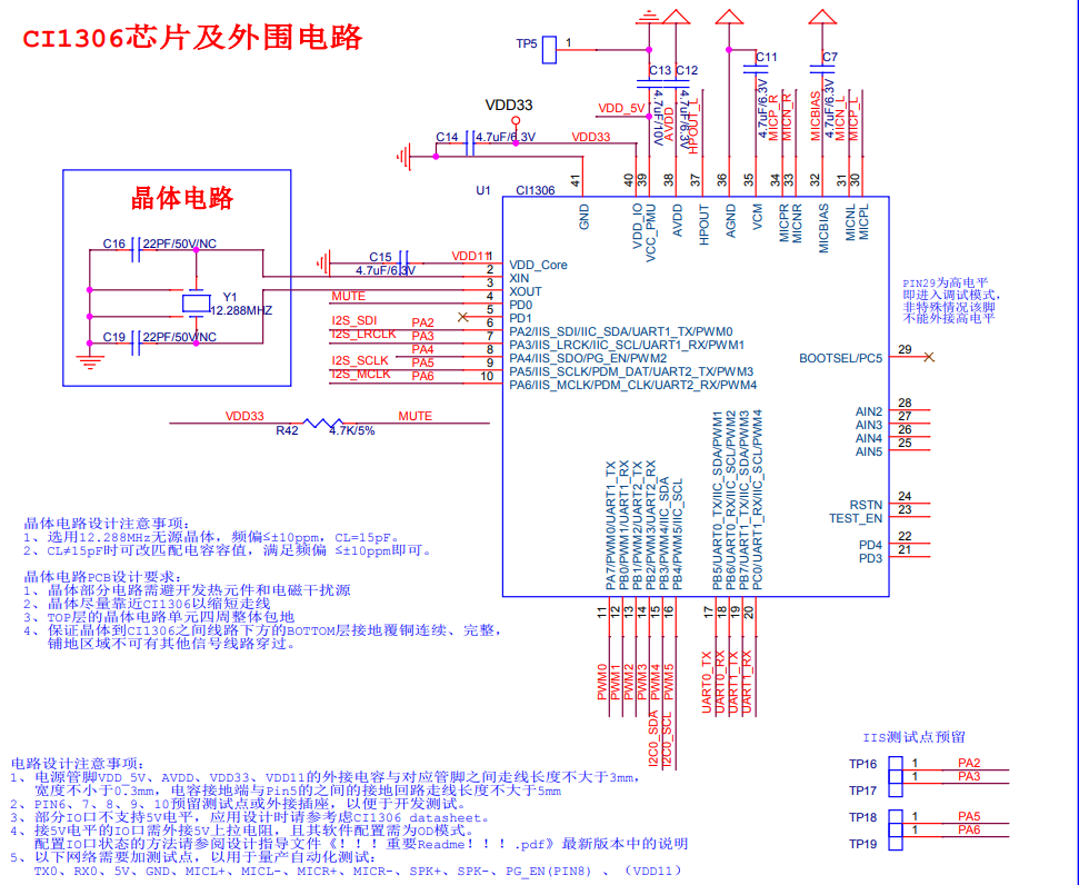 (3)其他:喇叭对应连接到SPK+,SPK-接口处。1306带有RESET功能。可以通过拨动电源开关进行通断电,或按reset键使芯片复位后让系统重启。