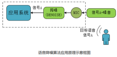 应用原理应用原理示意框图如下,人声为目标语音信号A,噪音和信号A在应用环境进行复杂的混合后进入芯片,语音降噪算法可抑制噪音信号,提高信号A的信噪比,从而提升识别效果。