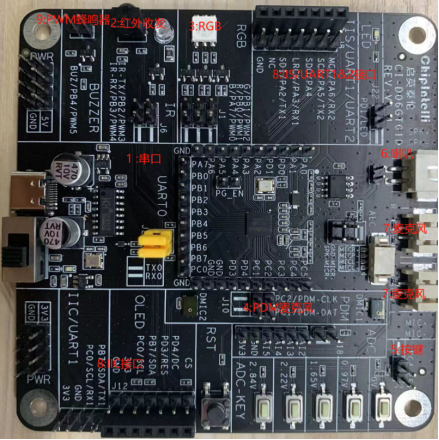 双麦语音识别方案实现,可以采用启英泰伦AI语音芯片☞CI130X 系列(CI1303/CI1302/CI1306) 。本文方案开发采用CI-D06GT01D开发板进行开发演示。开发板采用主芯片型号为CI1306,集成了启英泰伦自研的脑神经网络处理器BNPU V3和CPU内核,系统主频可达240MHz,内置高达640KByte的SRAM,集成PMU电源管理单元和RC振荡器,双通道高性能低功耗Audio Codec和多路UART、IIC、IIS、PWM、GPIO、PDM等外围控制接口。芯片仅需少量电阻电容等外围器件就可以实现各类智能语音产品硬件方案,性价比极高。