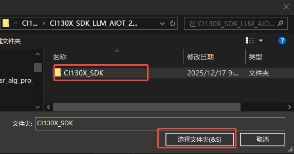 如果还没有下载CI13XX系列的SDK, 可以到☞启英泰伦语音AI平台-开发资料中进行搜索下载。