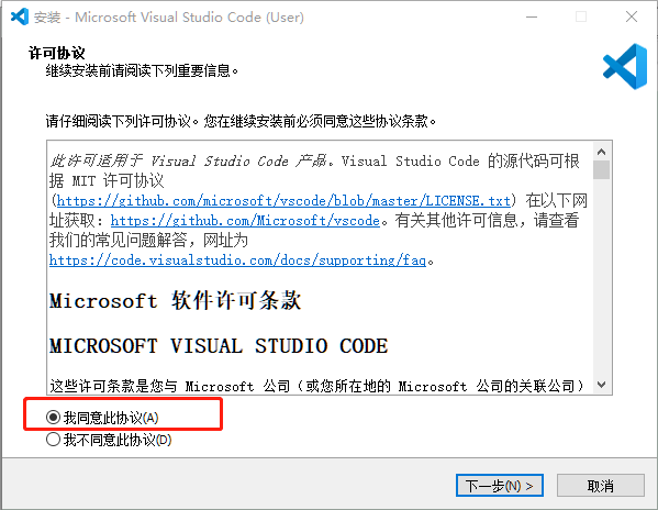 - 双击运行下载好的安装文件,在弹出的许可协议界面选同意协议,再点击下一步。