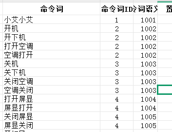 另外需要注意的时,如果有特别要求,如客户要求必须输出”风速调大”、”风速调小”,那么在cmd-info表格中,这两类功能词的命令词ID要设置成不同。