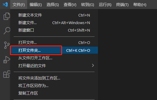 方法三:先打开vscode软件,如图3-6通过菜单栏->文件->打开文件夹,再如图3-7选中CI-SDK-NN-ENC_Vx.x.x文件夹(.vscode文件夹的上一级)
