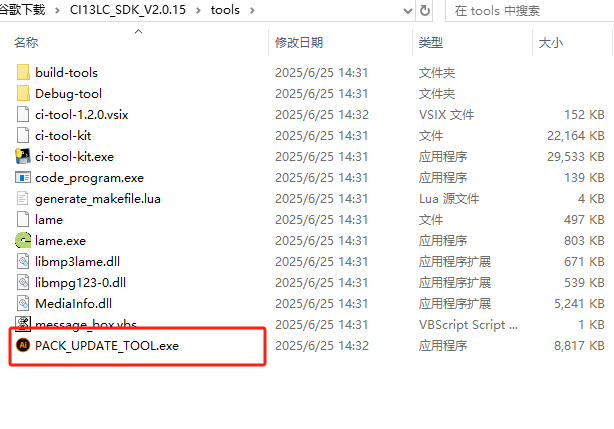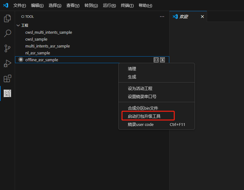PACK_UPDATE_TOOL.exe is located in the tools folder under the SDK root directory. You can also use “pack_upgrade.bat” in the Firmware folder or right-click on the SDK compilation interface and select “Start Packaging Tool” to open it. The usage can be learned from the documentation in section 2.1 or viewed in the “Chipintelli - Firmware Update & Print Operation Documentation” in the module design materials downloaded in section 3.2.