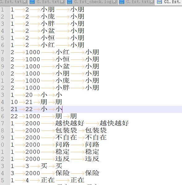 The first two columns in the word segmentation file contain numbers like 1, 2, 3, 1000, and 2000, which represent recognition intermediate points or branch points. For example, when recognizing “Xiaopeng Xiaopeng,” the system first detects “Xiaopeng” and then detects it again, using the two matches to output the correct result.