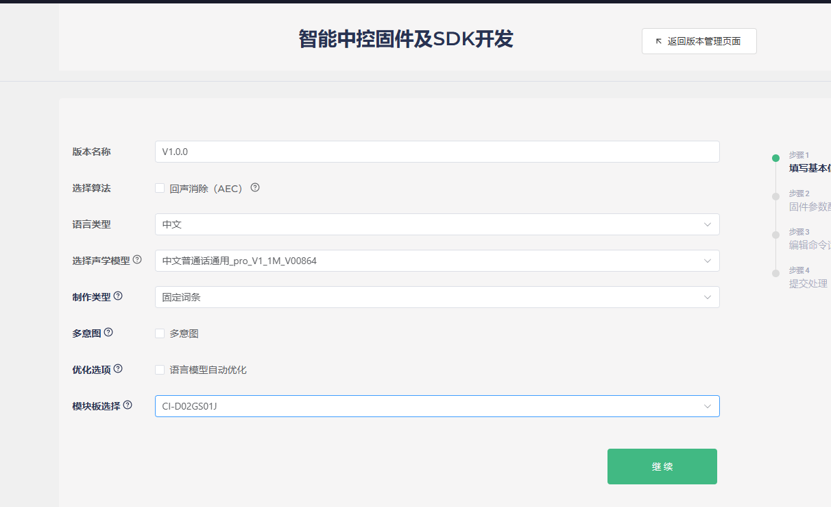 3.1.2 Select Voice Recognition Firmware and SDK Development.