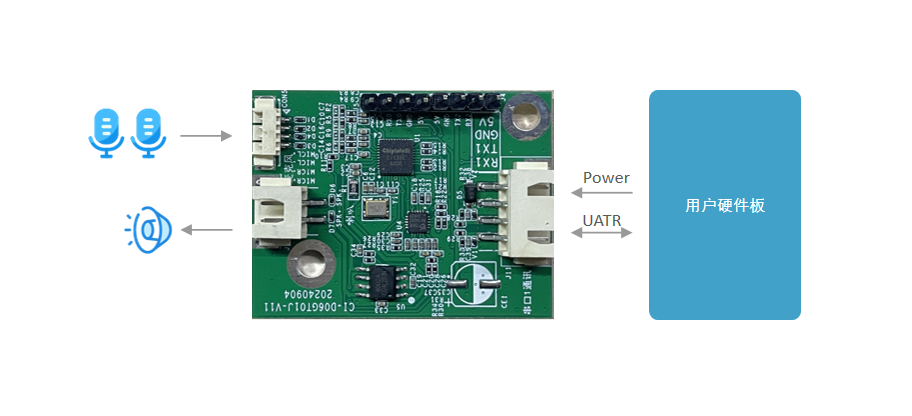 - High performance. The dual-microphone + AEC design achieves high recognition accuracy, long-distance recognition, dual-microphone noise reduction, and dual-microphone echo cancellation.