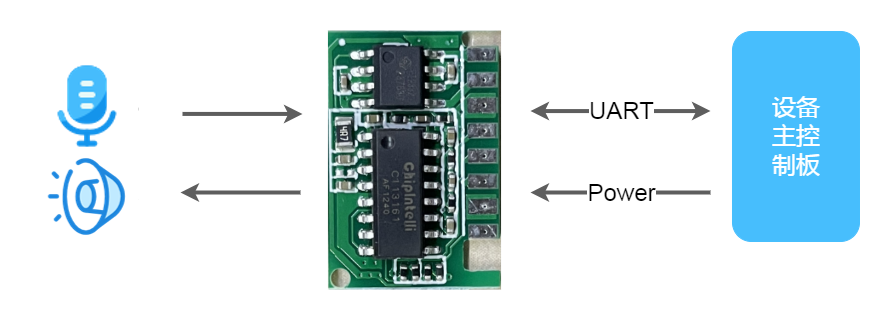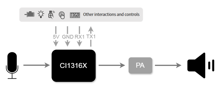 CI-F16XGS02T is a general-purpose, high-performance, low-power offline voice recognition module with good cost performance. The main chip can be either CI13161 or CI13162. The module features a simple and convenient application design, as shown in the following diagram.