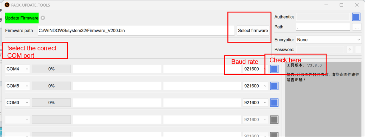 - Check if the UART pins are connected correctly, if TX and RX are reversed, if the USB-to-UART converter driver on the computer is normal, and if the correct COM port number is selected in the PC programming tool.