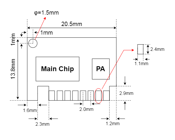 Compact design: Module dimensions are 20.5mm × 13.8mm (L×W) with a gold finger vertical mounting process, saving PCB area in end products.
