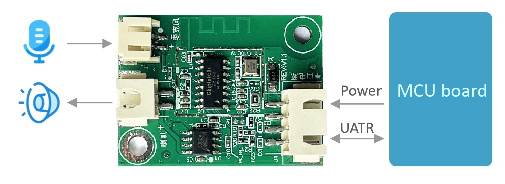 Voice Function Test: After firmware programming, it is recommended to perform functional testing on the module to verify the success of the firmware programming. Before testing, connect the microphone and speaker to the module, power it on to confirm if the power-on prompt sound is played, and test if the wake word and command words can wake up and be recognized normally. If all functions work properly, the module functions normally and the programming is successful; otherwise, the programming has failed, and further investigation is needed.