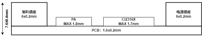 As shown in Figure 5, the module is rectangular in shape with dimensions of 30±0.3mm × 40±0.15mm, PCB thickness of 1.6±0.2mm, and module height of 7.6±0.4mm. Users can design the structure based on these dimensions.