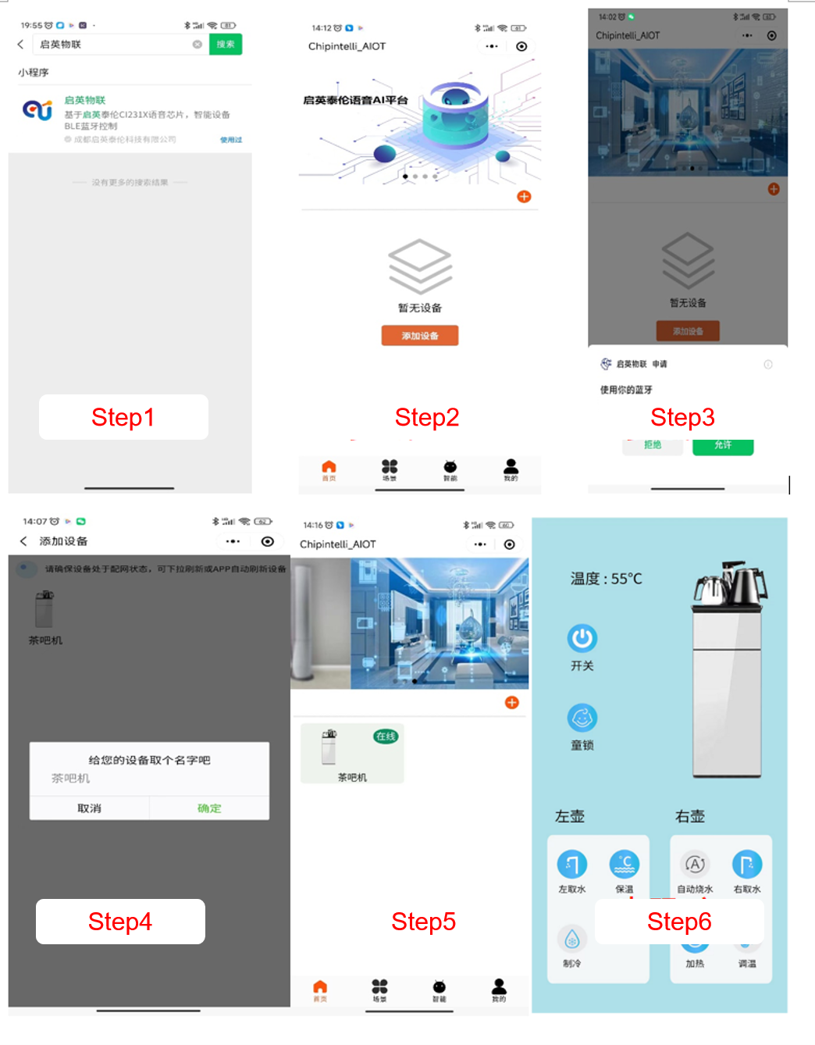 - Search for the “Chipintelli IoT” or “AI Voice Control” mini-program in WeChat