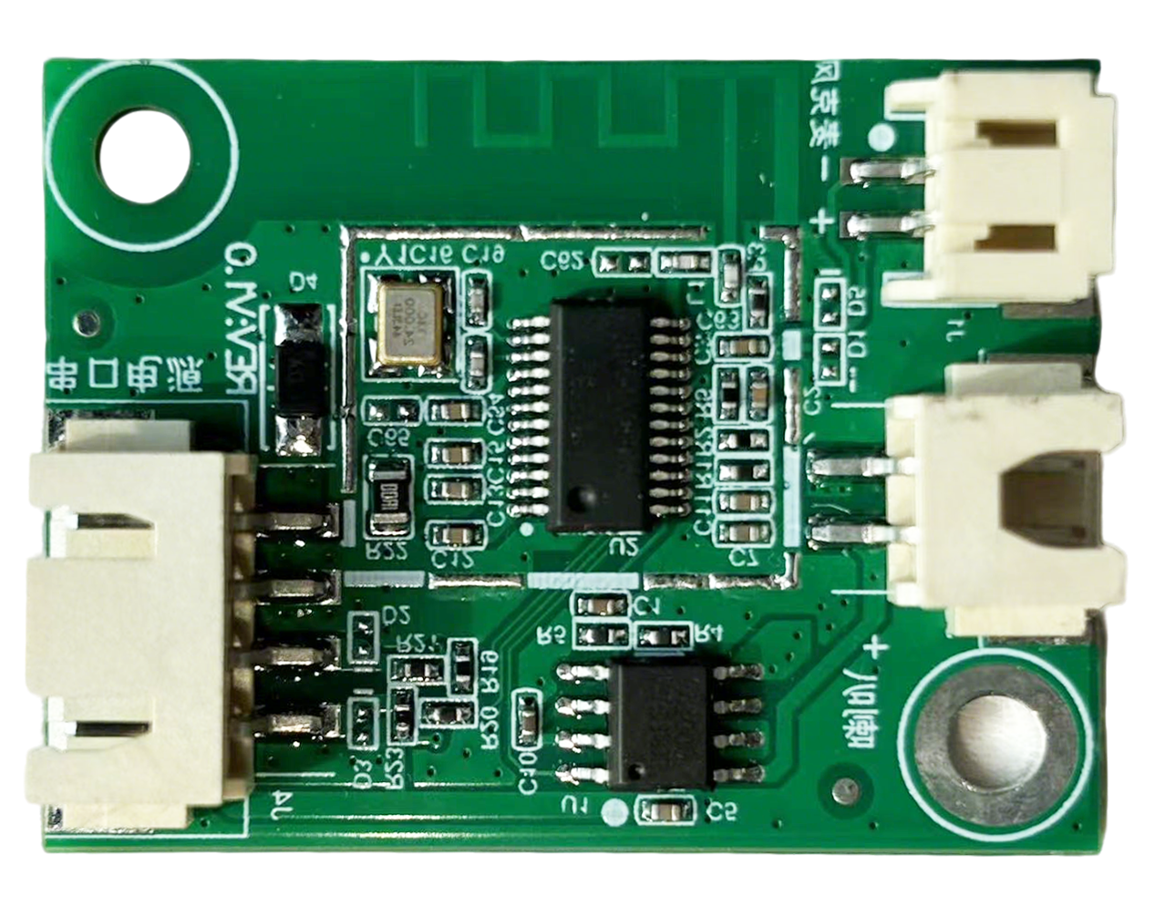 - No broadcast After Flashing If this issue occurs, check the following: 1. Verify the flashed firmware is compatible with the board. 2. Ensure the speaker is properly connected and powered. Use an oscilloscope to measure the audio output test points on the main chip. If there is no output, check the firmware. If there is output, inspect the audio power amplifier for soldering issues. If the audio power amplifier is faulty, replace it and retest. The measurement points are shown below. If the issue persists, contact technical support.