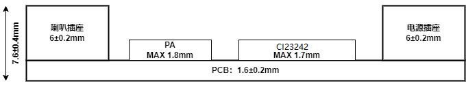 As shown in Figure 5, the module has a rectangular shape with dimensions of 30±0.3mm × 40±0.15mm, PCB thickness of 1.6±0.2mm, and module height of 7.6±0.4mm. Users can design the structure based on these dimensions.