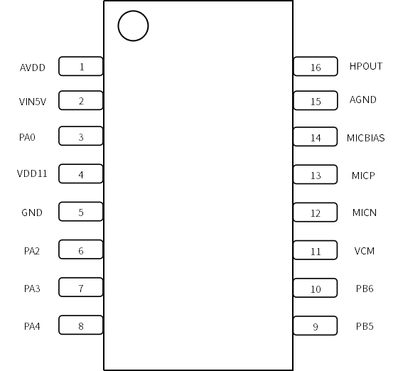 | 14 | MICBIAS | O | - | - | Microphone Bias Output |
