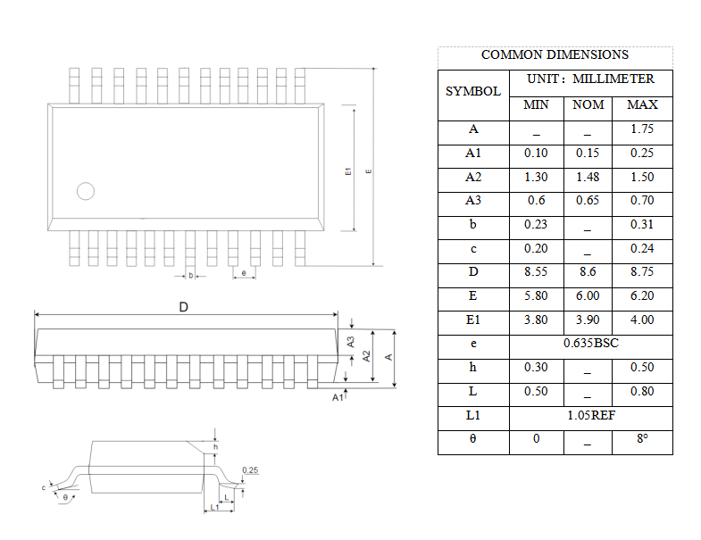 The figure below shows the package outline drawing of the chip. Please refer to the diagram for specific dimensional parameters.