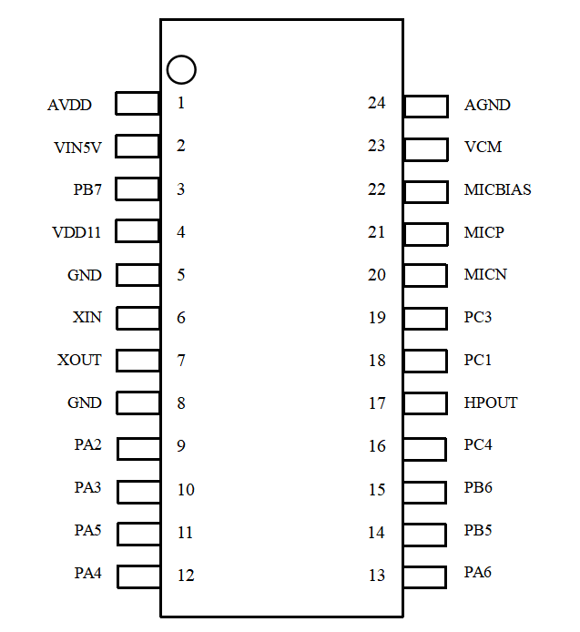 | 22 | MICBIAS | O | - | - | Microphone bias output |