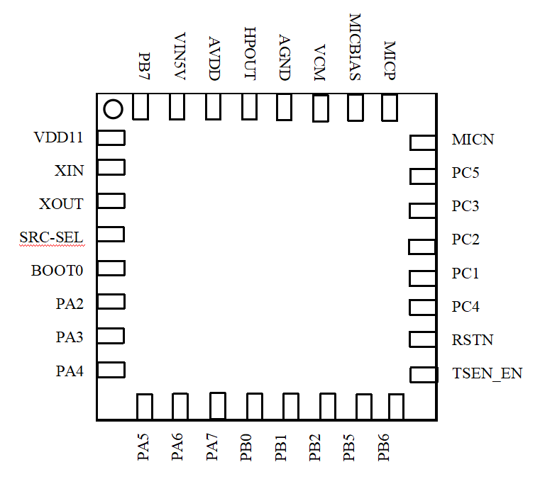 | 3 | XOUT | O | - | - | ●XOUT (default power-on state) ●GPIO PA1 |
