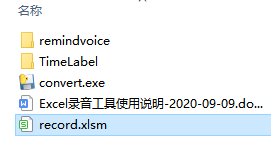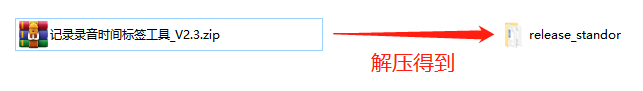 Open the “3. Install Recording Time Label Tool” folder and extract the “记录录音时间标签工具_V2.3.zip” file to get the “release_standor” tool. It includes a document named “Excel录音工具使用说明-2020-09-09.docx” for reference.