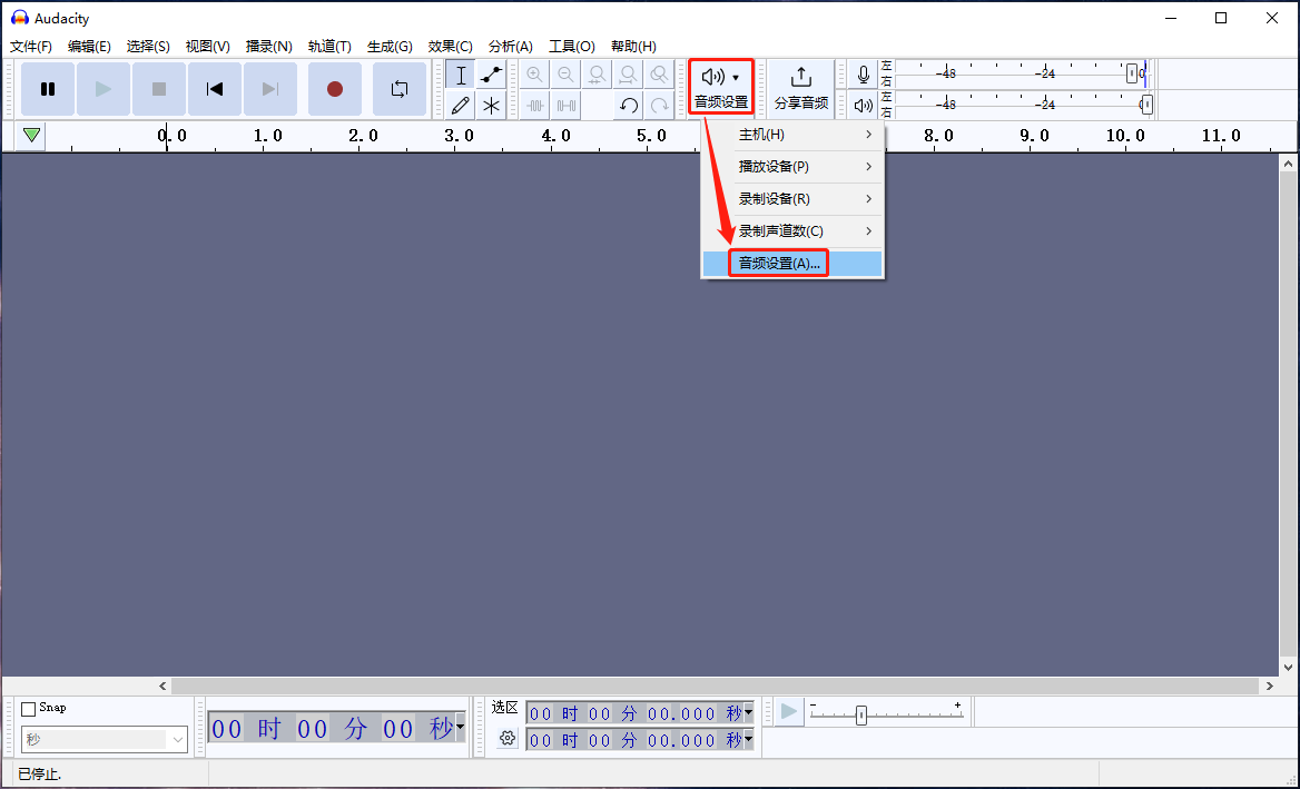 ① Open the “Audacity” recording software, click on “Audio Settings”, and enter “Audio Settings…”