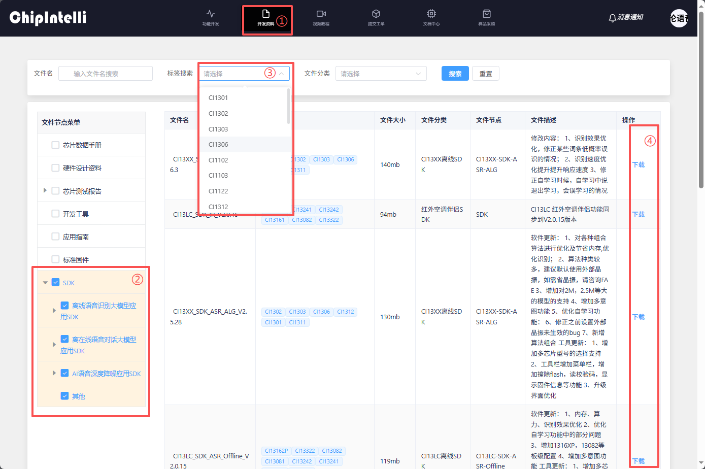 - Enter ☞Chipintelli AI Speech Development Platform, click on ☞Development materials;