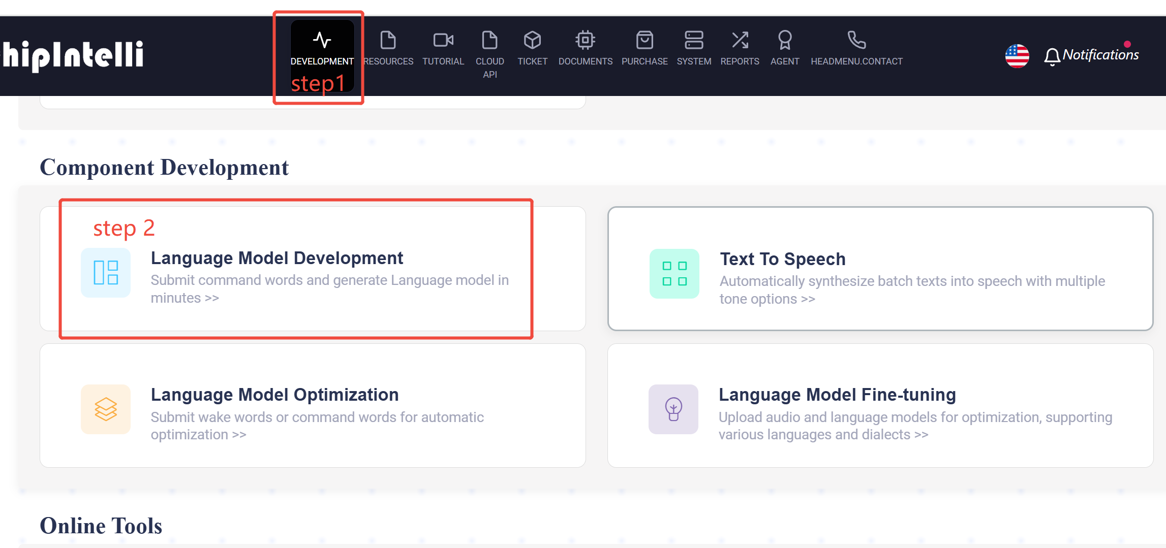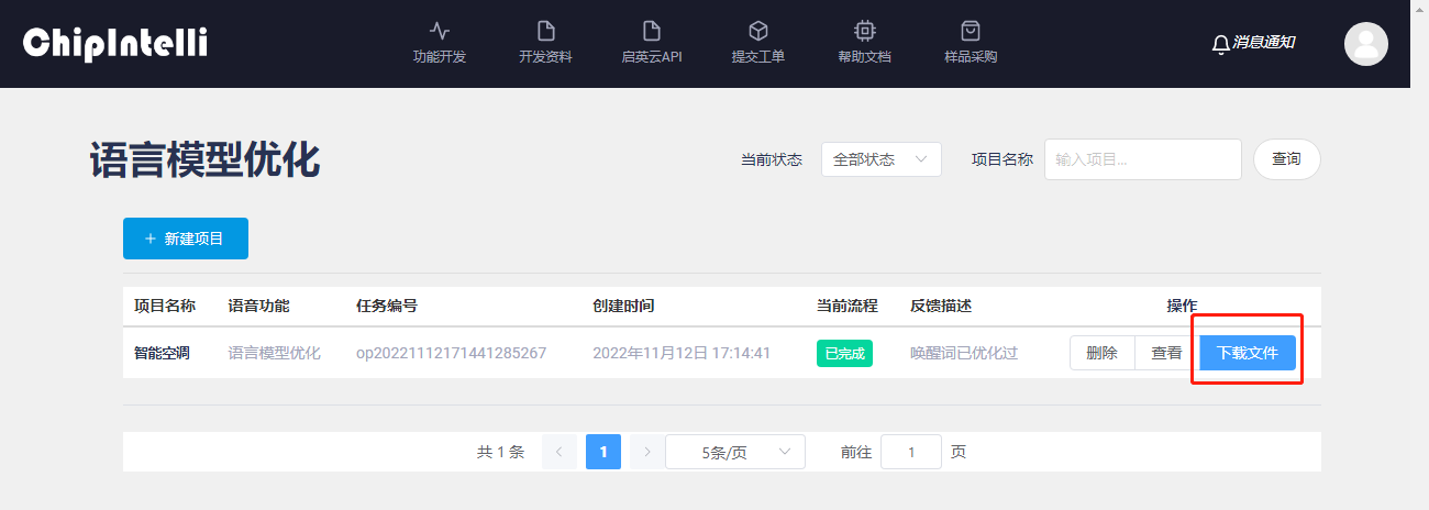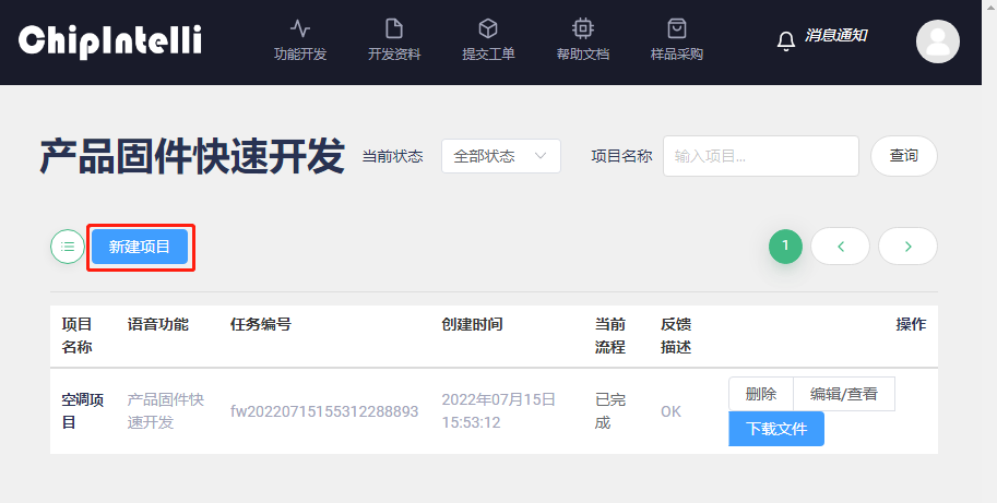 Enter the “Development” page of the Chipintelli AI Speech Development Platform;