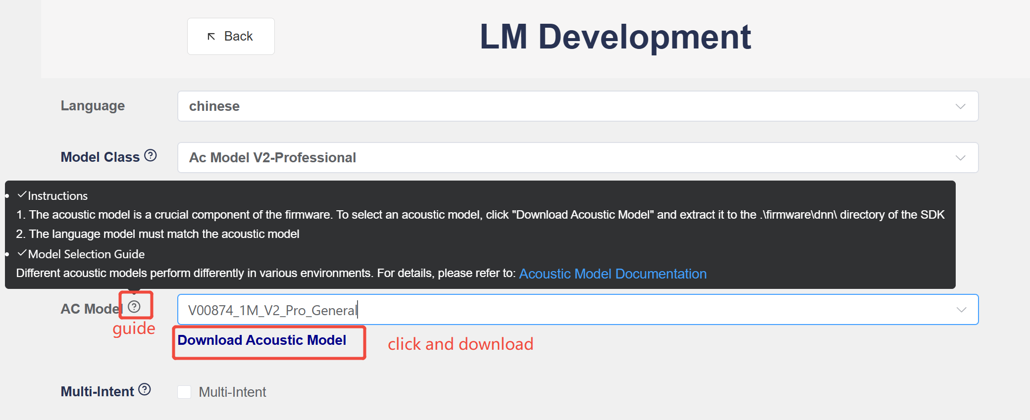 AC modelreferencing to the instruction/guide, click “Acoustic Model Download” and unzip it into the directory/firmware/dnnin the local SDK software development kit of the PC.