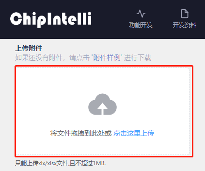 Back to the webpage, click and upload the corresponding Excel attachment;