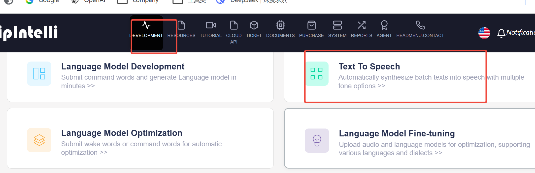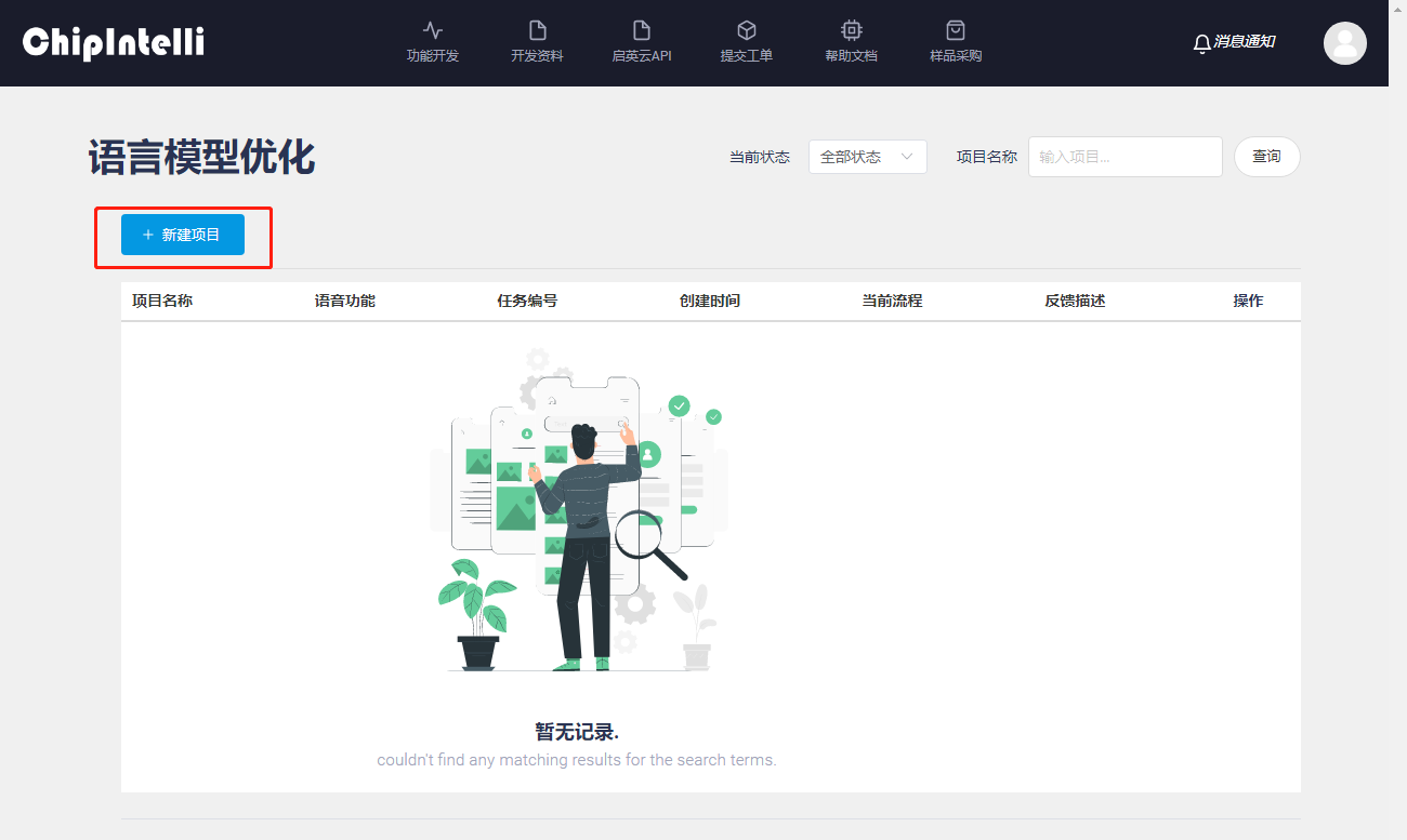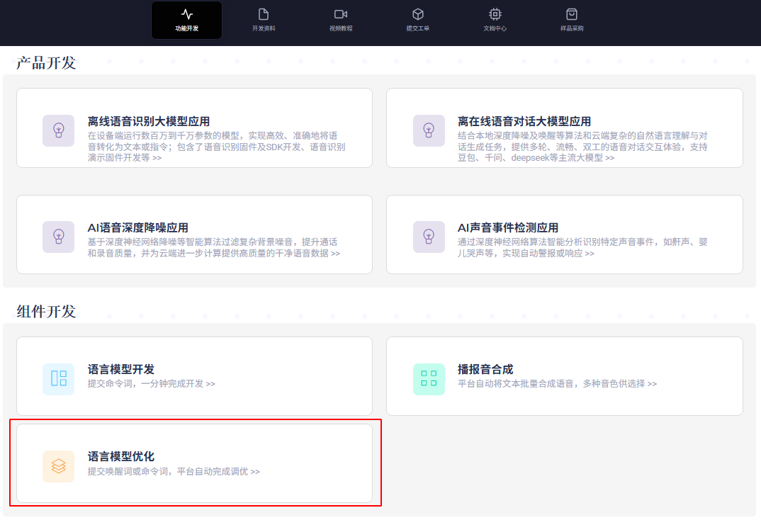 - Open the “ChipIntelli Voice AI Platform” and click on the “Language Model Optimization” feature in the functional development section;