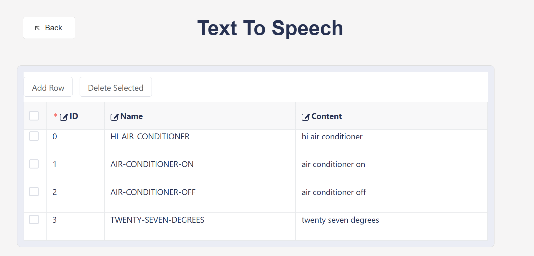 ② Edit and fill in wake-up words, command words and voice prompts in the new lines in the edit box below, as shown in the following figure: