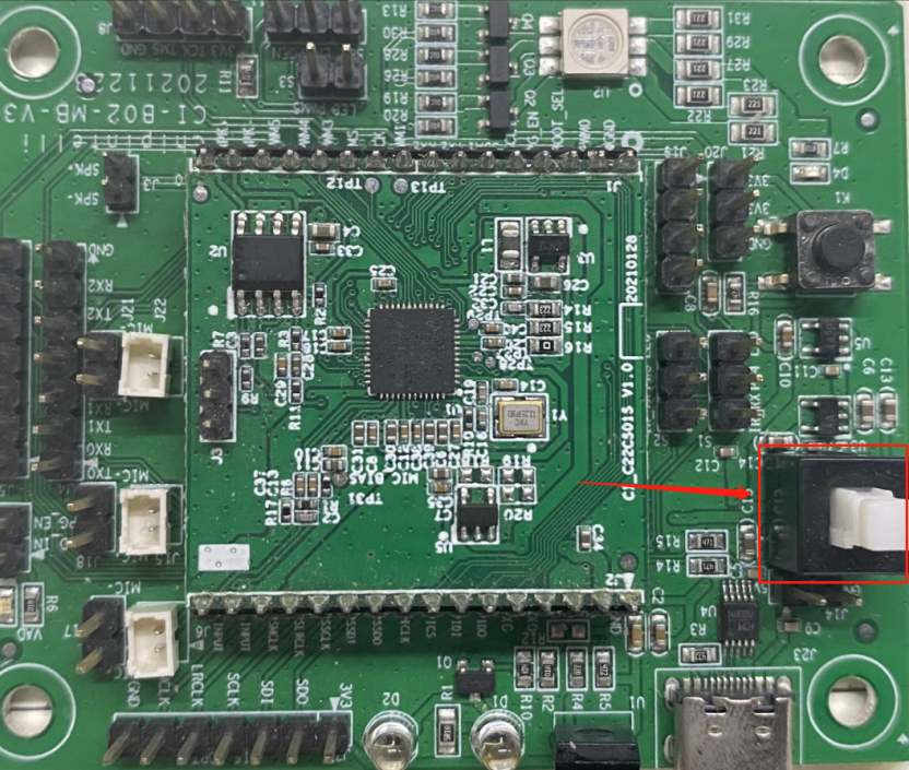 ② When flashing the CI1122/CI110X series CI-B02-MB evaluation kit, power off the power switch shown in the figure below, and then power on the power switch: