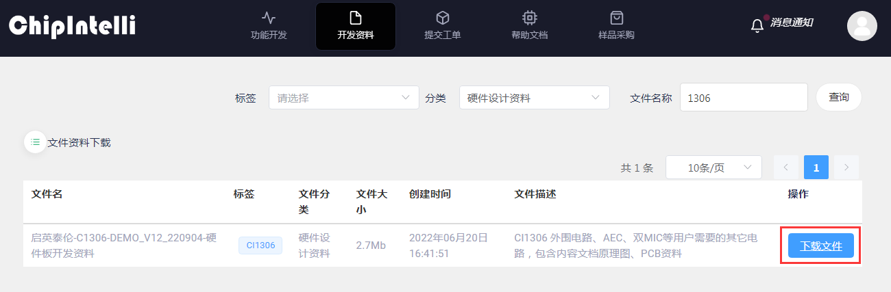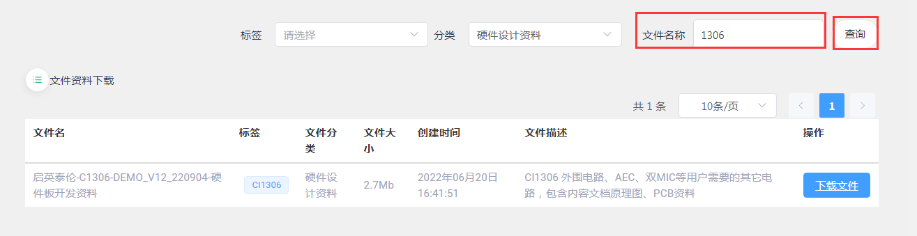- Step 3: “File name” Enter the specific chip model and click “Query”, such as “CI1306”;