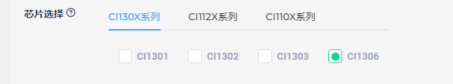 - Select the actual chip model number in use. For this example, we’ll use the CI1306 model;