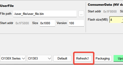 user_file.binin the project directory (CI11XX_SDK\sample\internal\sample_xxx\firmware\user_file). - Reserved Size: Increase or decrease in multiples of 0x1000, or keep the default.