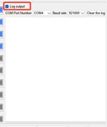 Check the (Log Output) option to view program log output. You can select the baud rate and COM port, and there’s also a clear window function.