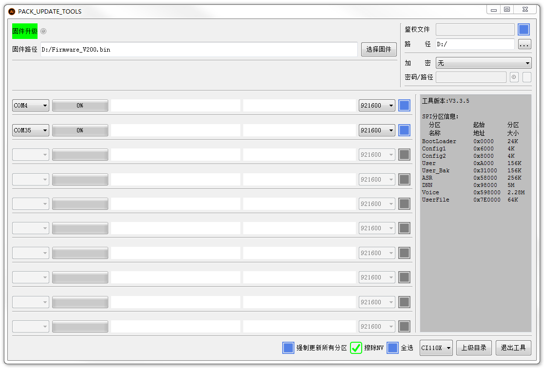 - Click the (Firmware Update) button on the main interface or the (Firmware Update) button on the firmware packaging page to enter the firmware programming page shown in the figure below.