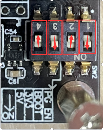 Set the topmost DIP switch (position 1) to ON as shown in the figure above. (Please return it to its original position after testing)