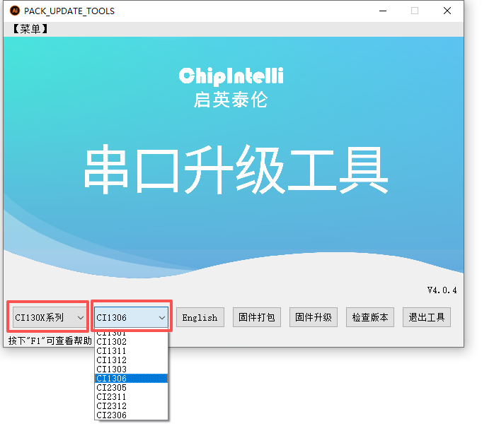 Open the PC upgrade tool, select the CI130X series, then select the specific chip model, and click [Firmware Update] in the order shown in the figure below. (If the PC upgrade tool version is too old, the interface may be slightly different. Please contact us for the latest PC upgrade tool if needed)