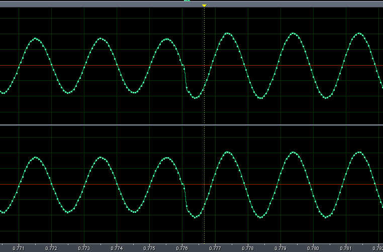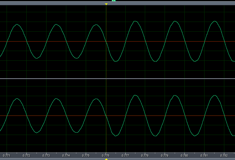 - 下图是过零检测功能打开时,增益变大时的波形: