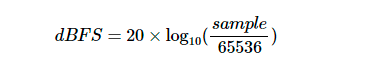 - 例如在16bit的系统中,其中sample就是采样值,65536是2的16次方,在不同采样位数的系统中,sample除的分母就不一样了。幅值dB的计算公式为: