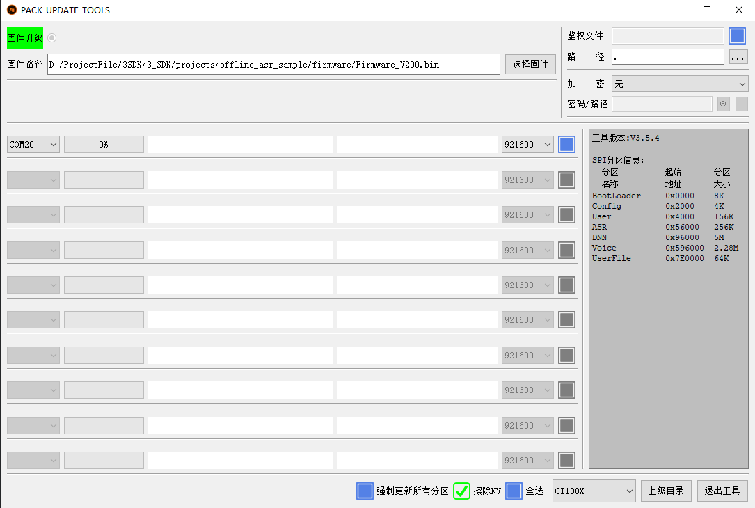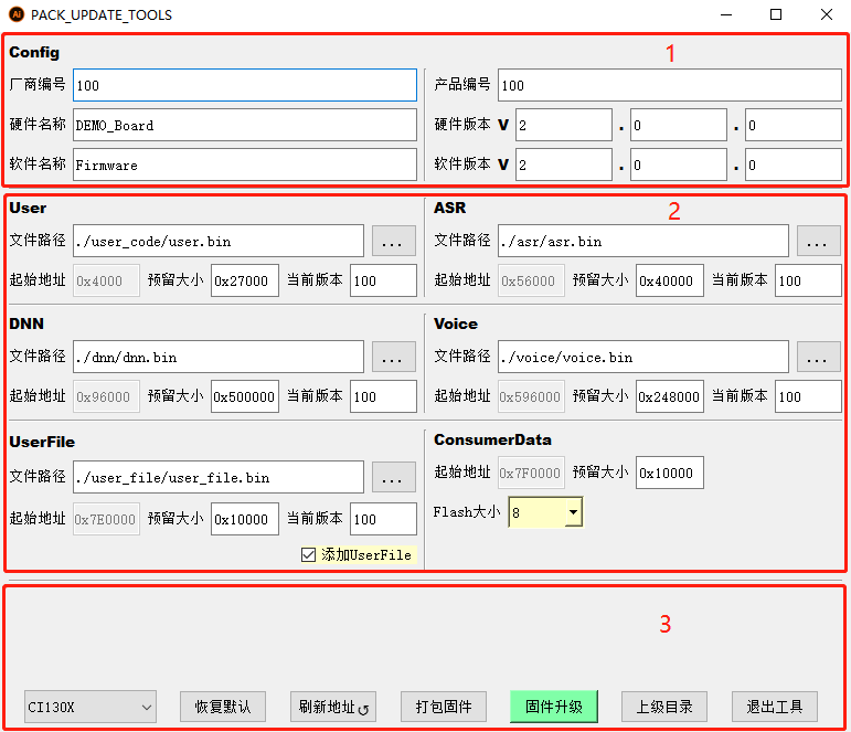 - User、ASR、DNN、Voice、UserFile等:固件分区信息区。