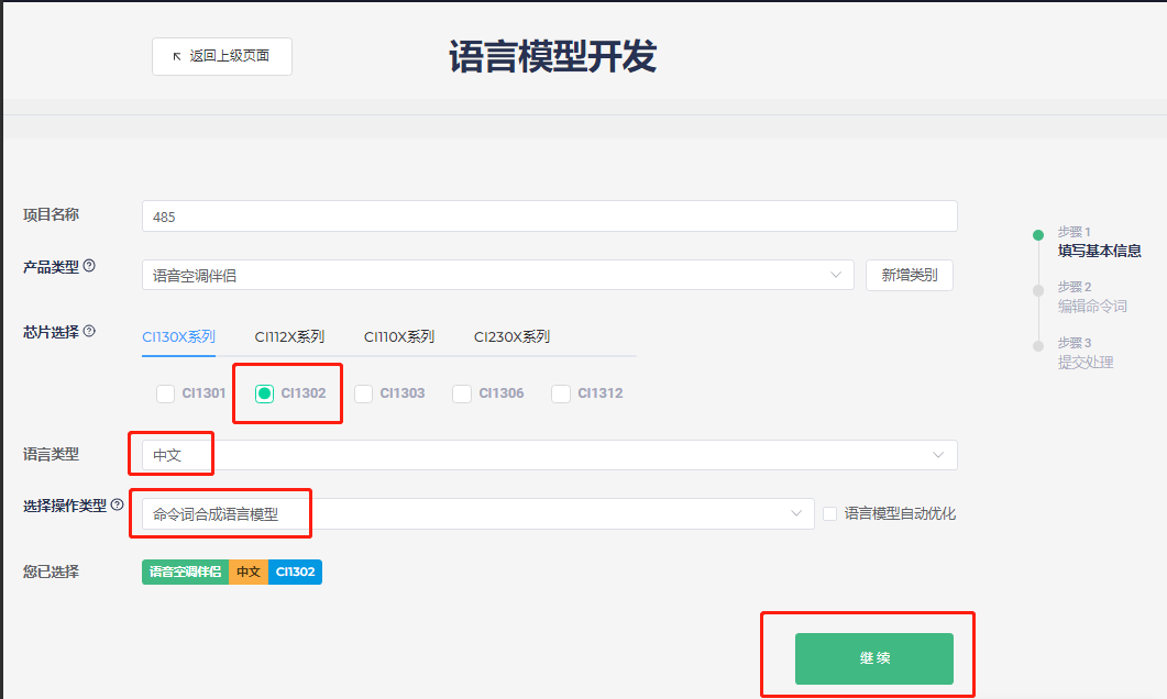 - 模型制作界面:先填写基本信息,再编辑命令词,最后提交处理