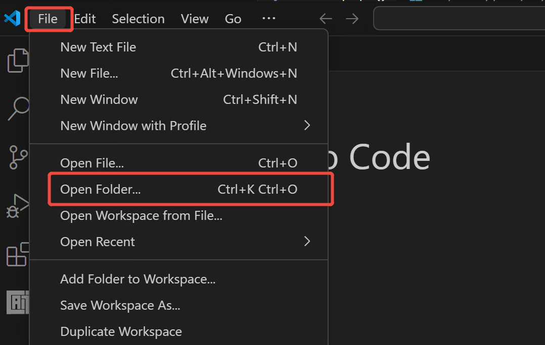 Method 1: Navigate to the SDK folder (directory containing the .vscode folder), right-click in an empty space, and select Open with Code: